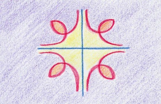 Zorg dat je eerst een vak van de spiegeling maakt. Daarna de rest. Werk eerst met geel, dan met een eigen kleur. Ga in een stromende beweging over de vorm. Ga meerdere malen over je vorm heen en zorg voor een lichte achtergrond.
